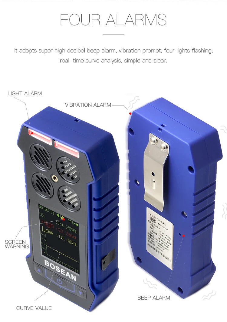 - Four alarm methods; This multi gas detector comes with adjustable audio; visual; light and vibration alarms alert when preset levels are reached;