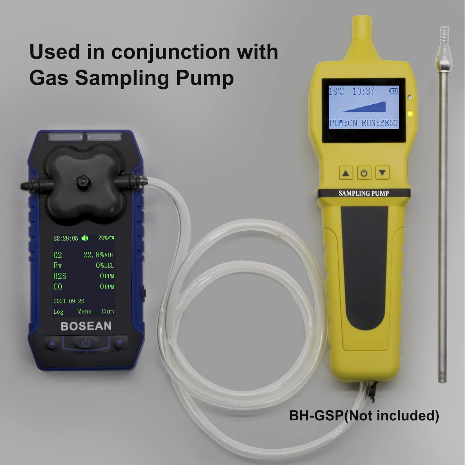 BOSEAN Portable 4 in 1 Gas Detector O2 EX H2S CO, Rechargeable Gas Meter with Vibration Audible Visual Alarm LCD Color Screen Gas Tester Analyzer